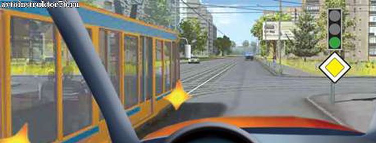 Вы намерены проехать перекресток в прямом направлении. Ваши действия?